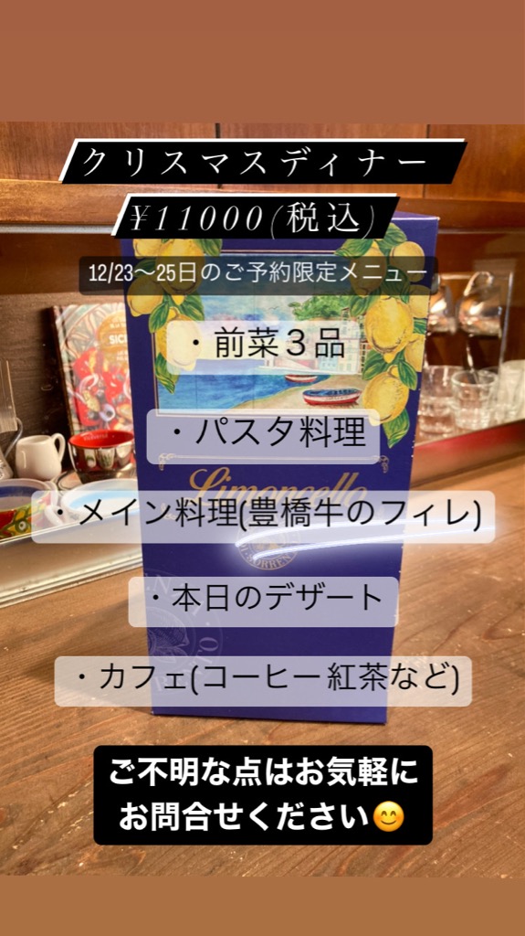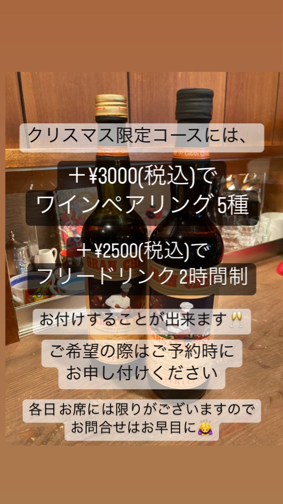 24、25日はクリスマスディナーコース限定になりますのでご了承ください。
